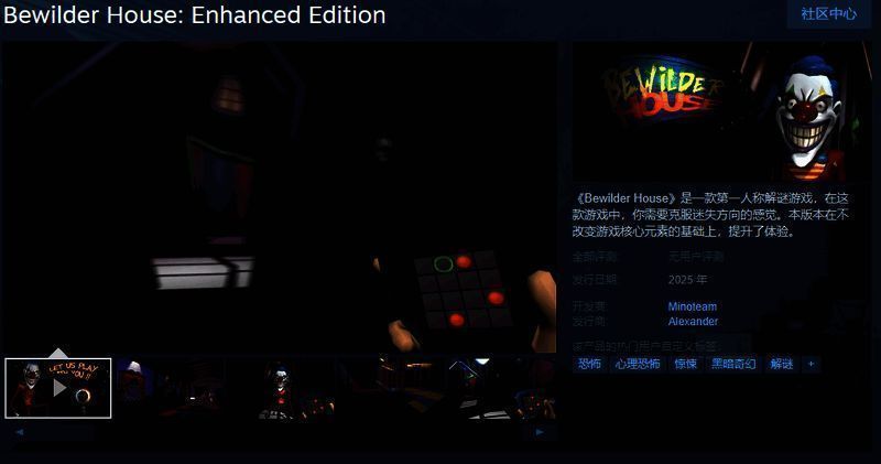 今日(12月20日),第一人称解谜游戏《恐怖马戏团:增强版》Steam页面上线,游戏暂不支持中文,感兴趣的玩家可以点击此处进入商店页面。