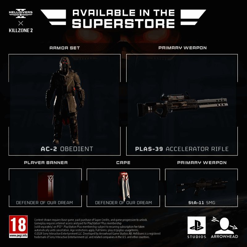 开发商 Arrowhead 游戏工作室宣布,最近刚刚推出的《绝地潜兵2》的《杀戮地带2》联动内容将对所有玩家免费放松。