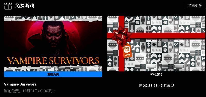 Epic连续15天神秘游戏免费领取现已开启,今天是第一天,和爆料的一样,《吸血鬼幸存者》现已可以免费领取,感兴趣的玩家不要错过了,明天继续神秘游戏。