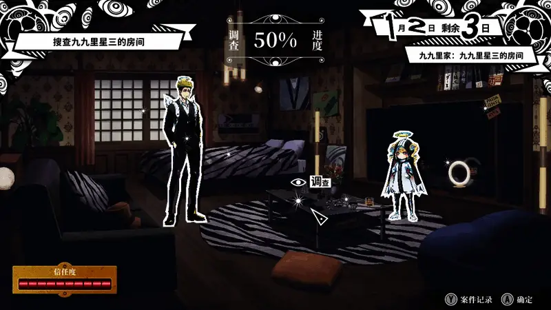 在进行搜查或打听情报时若发现可疑的词语,可使用“打响指”深入调查。组合手上的证据展现华丽推理,找出杀人犯的推理冒险游戏