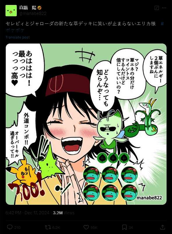 虽然君主蛇为2阶进化宝可梦,但时拉比确实基础宝可梦,因此即便成型需要一些回合数,不过只要成功打出这两张卡,基本就能宣告对局的胜利。