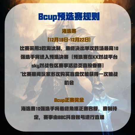 KK官方对战平台WPL BcupS15面向全体KK玩家开放预选名额,即日起购买“Bcup盲盒”,即可获得Bcup预选赛参赛资格,海选赛10强的选手将有机会角逐Bcup正赛资格!