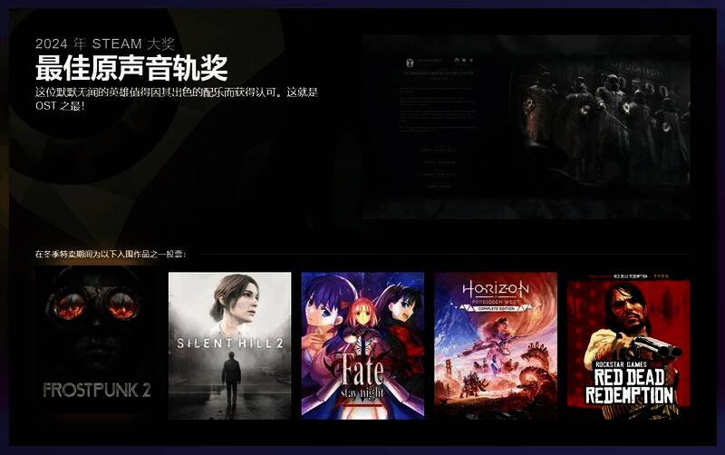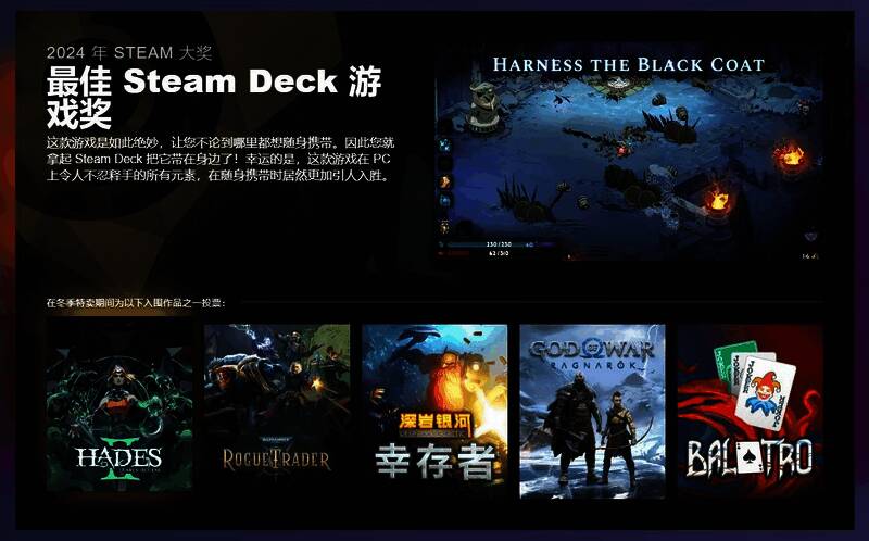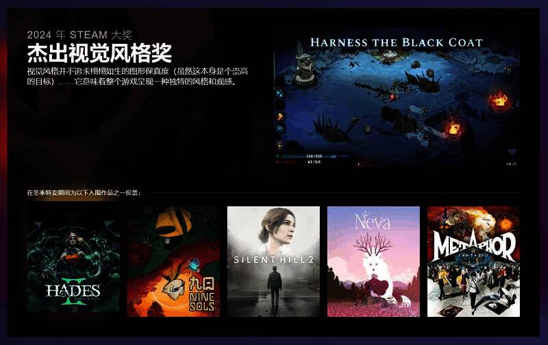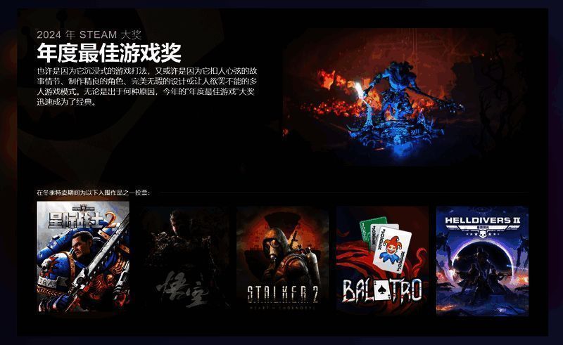 2024年Steam大奖各奖项入围游戏名单正式公布,预计将于北京时间12月20日凌晨2点开启投票,截止到1月1日凌晨2点,《黑神话:悟空》、《绝地潜兵2》、《小丑牌》和《潜行者2:切尔诺贝利之心》都入围了3个奖项。