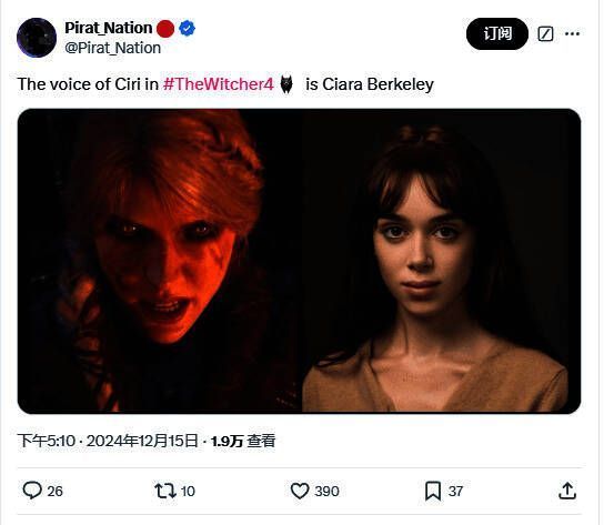 CDPR向外媒The Gamer确认Ciara Berkeley不仅是《巫师4》预告片中希里的配音,也是整个游戏希里的配音。