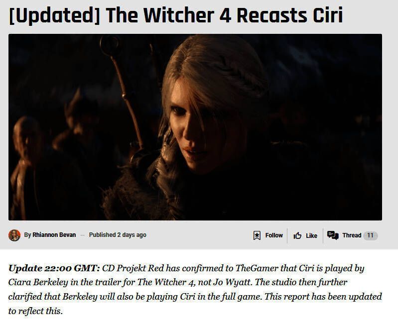 虽然这里的措辞仅指预告片,但该代表进一步澄清说,Ciara也将在整部游戏中扮演Ciri,排除了Jo Wyatt重返该角色的可能性。