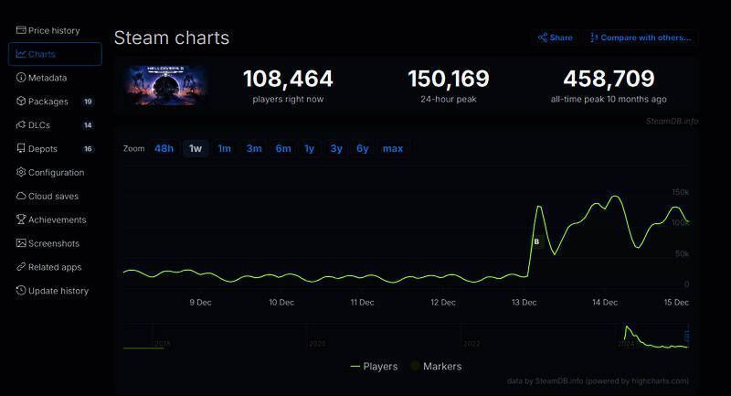 和其情况一样的是,《绝地潜兵2》在TGA上获得最佳多人游戏后,Steam在线也出现了猛涨,Steam在线从之前的2万人左右涨到了15万人。
