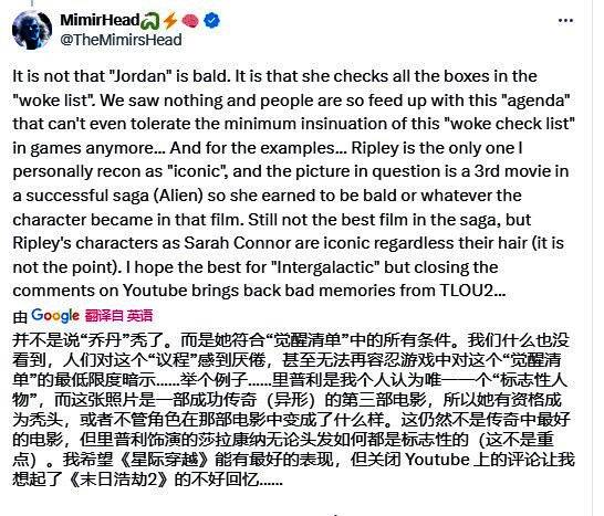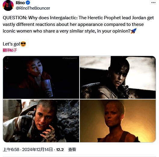 顽皮狗新作《星际:异端先知》女主角乔丹吓坏正常审美的玩家,然而银幕上也有许多剃了光头后仍然很漂亮的女演员,比如《疯狂麦克斯4:狂暴之路》女主查理兹·塞隆,《异形》女王西格妮·韦。这在网络上引起了热议。