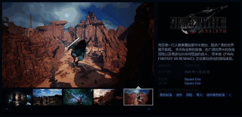 今日(12月14日),动作RPG游戏《最终幻想7:重生》现已开启预购,该作将于2025年1月23日正式发售,支持简繁体中文,游戏预购折扣7折,国区本体折扣价312.2元,数字豪华版折扣价401.1元,感兴趣的玩家可以点击此处进入商店页面。