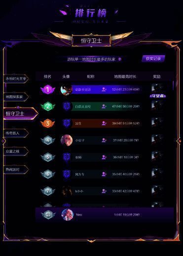3.恒守卫士:游玩单一地图时长最多的玩家