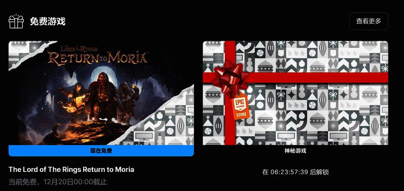 Epic本周喜加一已更新,神秘游戏为《指环王:重返莫瑞亚》现已可以免费领取,时间截止至12月20日0点,感兴趣的玩家不要错过了,下周继续神秘游戏。