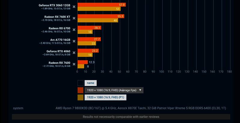 虽然以上GPU都不是为1440P(2K)游戏而生,但经过测试,RTX 3060仍然能带来一个可观的40帧体验,而4060显卡只有23帧。