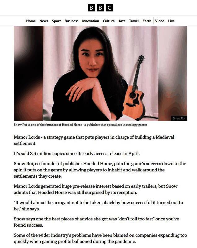 近日在接受BBC采访时,Hooded Horse的联合创始人Snow Rui解释说,尽管公司在发行前进行了营销并播放了预告片,但《庄园领主》的反响仍然令公司感到意外。Rui说:“如果说对它取得的成功不感到惊讶,那简直就是傲慢。”