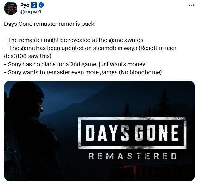 最近网上有爆料称,索尼计划重制或复刻《往日不再》,将登陆PC/PS5。虽然索尼目前并未确认,但指向这一消息的迹象日益明显。