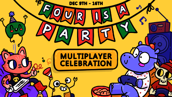 玩家们,快拿起你们喜欢的控制器!Steam的多人游戏活动“四人派对”即将于12月10日至16日火热登场!本次活动将庆祝Steam平台上最棒的合作与多人游戏,带来令人难忘的冒险、热血团队作战以及独家游戏发布。