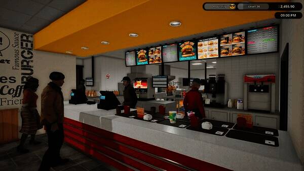处理快餐店顺利运营所需的一切。体验真实的饮料机、烤架和油炸锅的操作。
