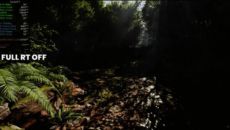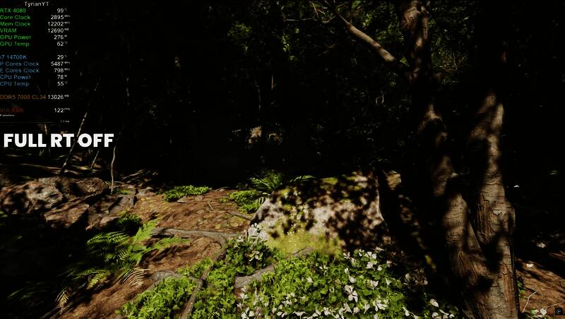 油管频道Tyrian发布了首个视频对比,展示了开启路径追踪前后的改进效果: