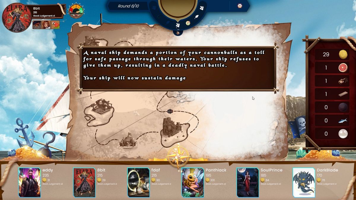 在Write Warz中,以海盗冒险为主题,扬帆出海,展开一场高风险的冒险!在险恶的水域航行,在各个港口买卖物资,让你的船员吃饱喝足,否则就会面临叛变的风险!每一轮,你的选择都很重要,因为你要袭击对手的船只,发现隐藏的宝藏,在海战中击退敌人。注意随机事件和全新的海盗主题情节点,它们可以在瞬间改变游戏的潮流。你会扬帆起航,追求财富、名望,还是其他什么?是的,还有歌声!在这个狂野的航海故事中,只有最勇敢的海盗才能统治海洋。