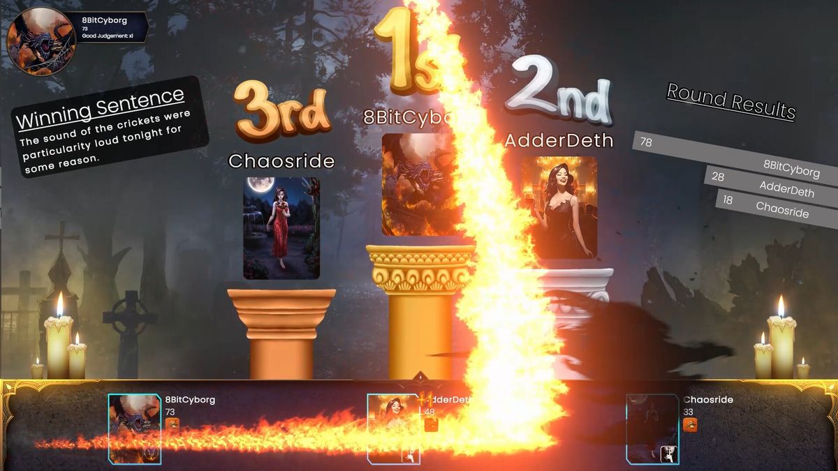 能力可以帮助玩家获得额外的选票、窃取分数、改变写作条件或对对手施加惩罚。掌握这些能力对于战胜对手至关重要,因为适时的能力可以将连败转化为胜利或破坏对手精心策划的计划。无论您是保护自己免受攻击、窃取关键奖励还是操纵叙事,这些能力都会为每场游戏提供战略深度和令人兴奋的转折。