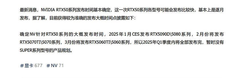 这意味着以上所有显卡都将在2025年第一季度发布,目前英伟达暂未准备Super系列。