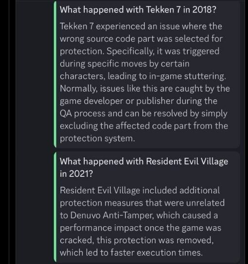 Irdeto还提到许多游戏,包括《生化危机8》《铁拳7》《女神异闻录5》,并解释了是什么导致了这些游戏的优化问题。比如《生化危机8》,这是因为卡普空加了额外保护措施,当游戏被破解后,这种保护就会对游戏性能造成影响。当该保护被移除后,游戏运行就更快了。《铁拳7》则是因为一个源代码错误问题,在特定角色的特定移动中会被触发,从而导致游戏卡顿。反正该公司坚持认为,肯定不是Denuvo导致游戏性能下降。
