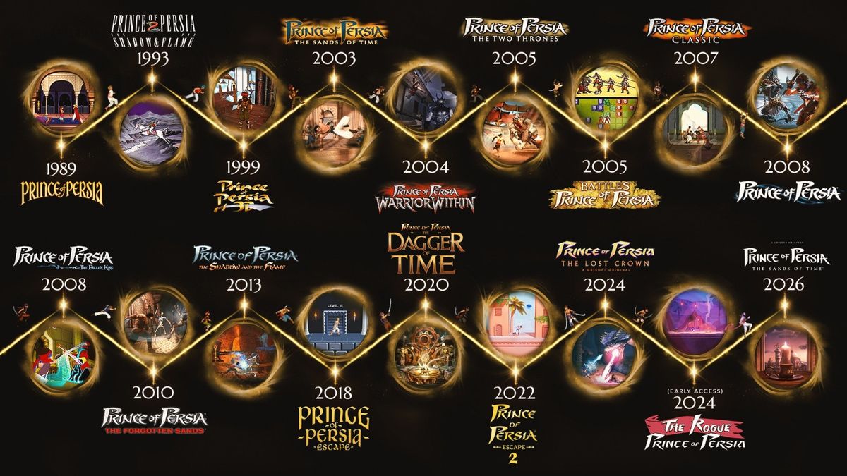 最近育碧确定了《波斯王子:时之砂》重制版的发行日期,该作计划于2026年推出。此前有传言称重制版将再次延期,但现在育碧发布了游戏时间线图,展示了重制版发布时间。