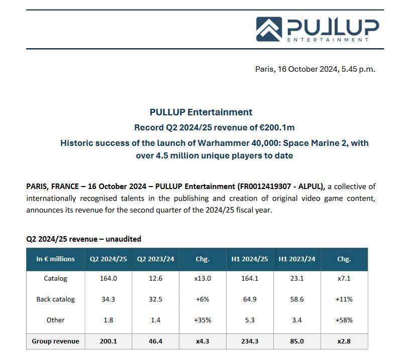集团副首席执行官 Geoffroy Sardin 表示:“我们第二季度的收入超过了之前在2022-23 财年创下的纪录。《战锤40K:星际战士2》的推出在数量和执行方面都非常出色。”