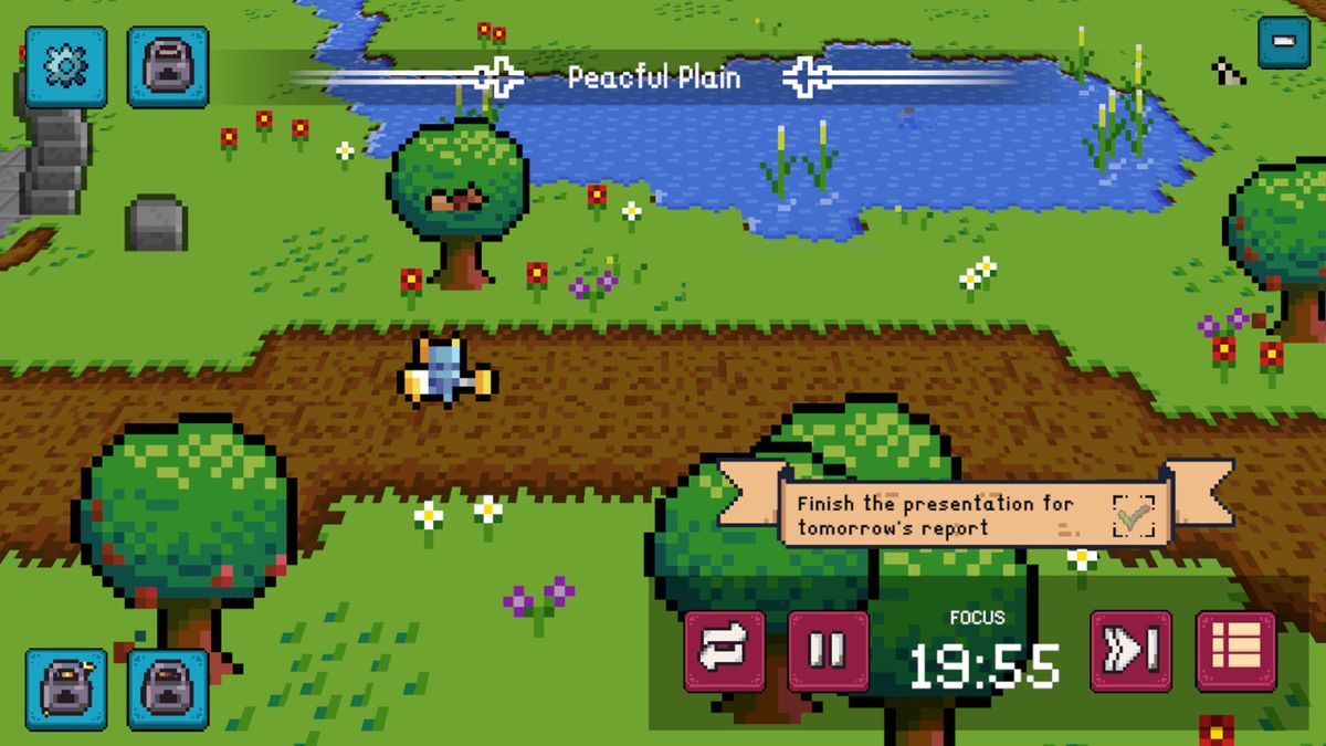 这是一款基于「番茄钟工作法」的RPG放置冒险游戏,藉由完成番茄钟的专注工作阶段,来推进角色探索世界。为了夺回女神的时光沙漏,恢复世界和平,勇者必须要击败邪恶的魔龙「拖延症」以及它的众多手下们。「死线勇者」,拯救世界就靠你了!