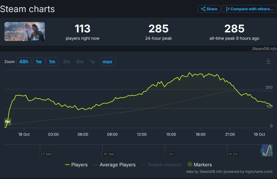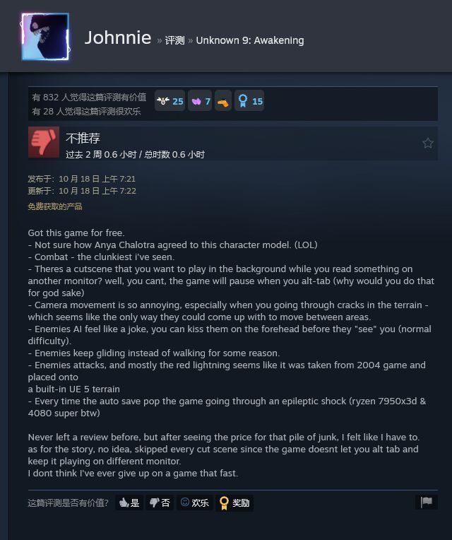 根据 SteamDB,游戏在 Steam上发售后玩家峰值仅有不到300 人,且在 23 个用户评价后,游戏的好评率仅为 30.23%(多半差评)。最有意思的是,根据许多玩家的评论,大多数获得这款游戏的人都是通过 AMD 硬件促销免费获取的,即便如此也没有多少人玩这款游戏。