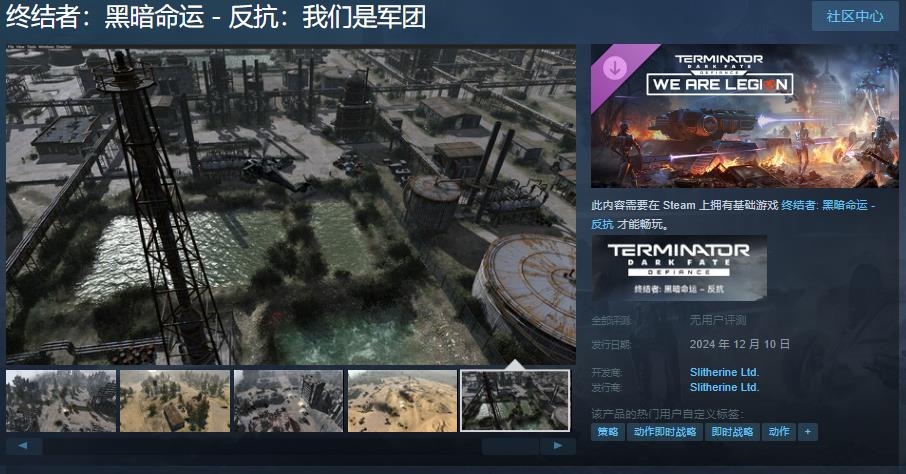 今日(10月22日),《终结者:黑暗命运 - 反抗》首个DLC「我们是军团」Steam页面开放,12月10日发售,支持中文,感兴趣的玩家可以点击此处进入商店页面。
