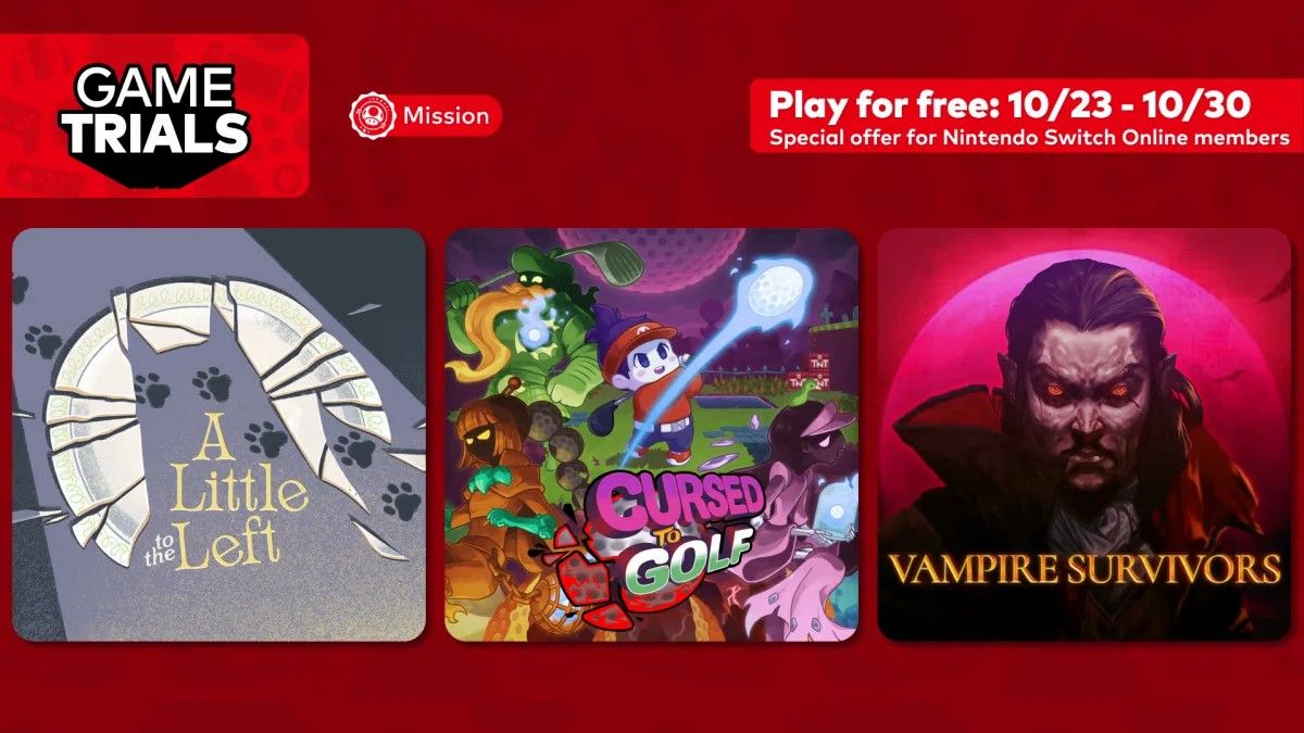 10月22日,任天堂宣布美服Switch Online会员将可以限时试玩三款精选游戏,包括:《往左一点》、《诅咒高尔夫》和《吸血鬼幸存者》,时间从10月24日凌晨1:00持续到11月1日下午14:59(北京时间),Switch Online会员届时可下载这三款游戏的完整版进行游玩体验。