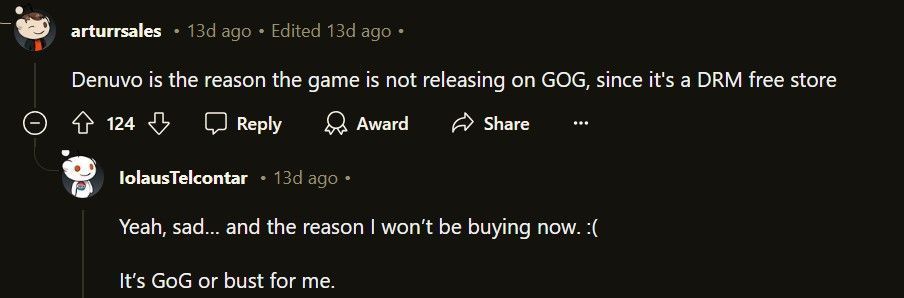 在听到D加密将要整合到游戏,并且不会登陆GOG后,很多粉丝非常失望。一些人甚至扬言要取消他们的游戏,可以看出玩家对D加密的厌恶。