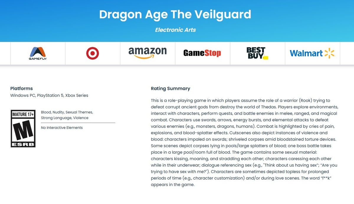近日《龙腾世纪4:影障守护者》通过ESRB评级,被评为“M”成人级17+。该作包含性内容,角色有时会裸露上身或在恋爱场景中裸露上身。游戏更血腥,整体尺度也更大。