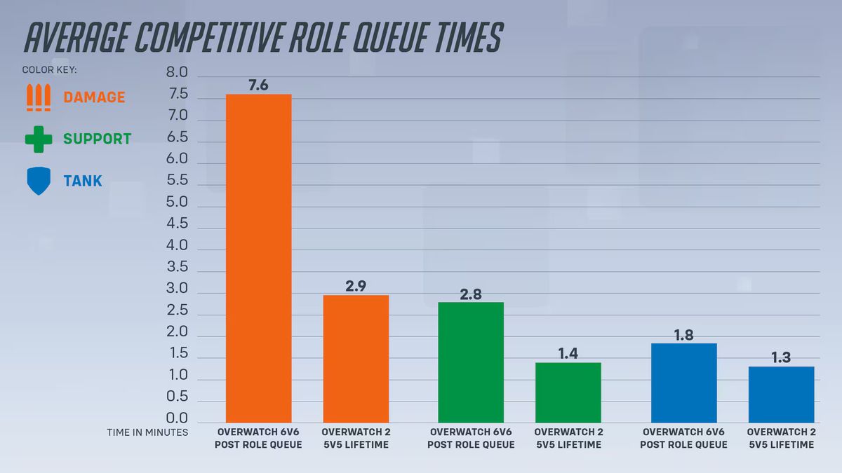 《守望先锋2》在推出时选择抛弃前作的6V6对战模式,为了缩减部分玩家的排队时间和提升玩家的游戏体验,而采用了5V5模式。
