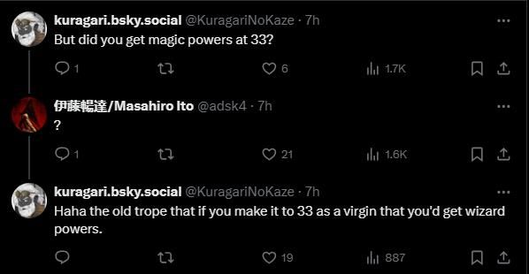 有趣的是,还有网友在伊藤畅达的推特下“安慰”他:“来到33岁的你是否已经掌握了火之魔法?”对此伊藤畅达只好缓缓地打出了一个“?”作为回应。