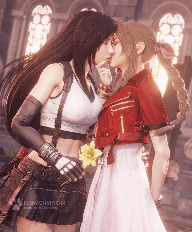 近日游戏博主ElenaChatNoir分享了《最终幻想7》蒂法和爱丽丝的全新3D作品,就见这两位亲密秀恩爱,甚至亲上了让人大呼过瘾。一起欣赏下美图吧!