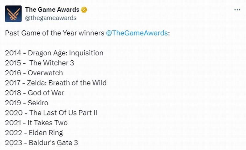 今日(10月28日)TGA官方发推文,回顾了TGA历年年度游戏得主,这也引起了许多网友的热烈讨论。