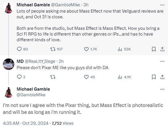 Gamble表示:“《质量效应5》是照片级写实的,只要是我在负责,它就会一直如此。”