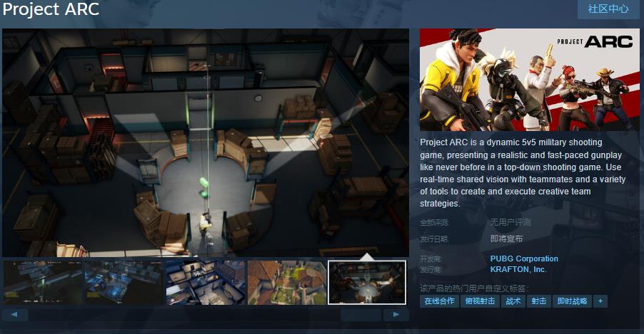 今日(10月29日),吃鸡厂商新作《ProjectARC》Steam页面上线,发售日待定,暂不支持中文,感兴趣的玩家可以点击此处进入商店页面。