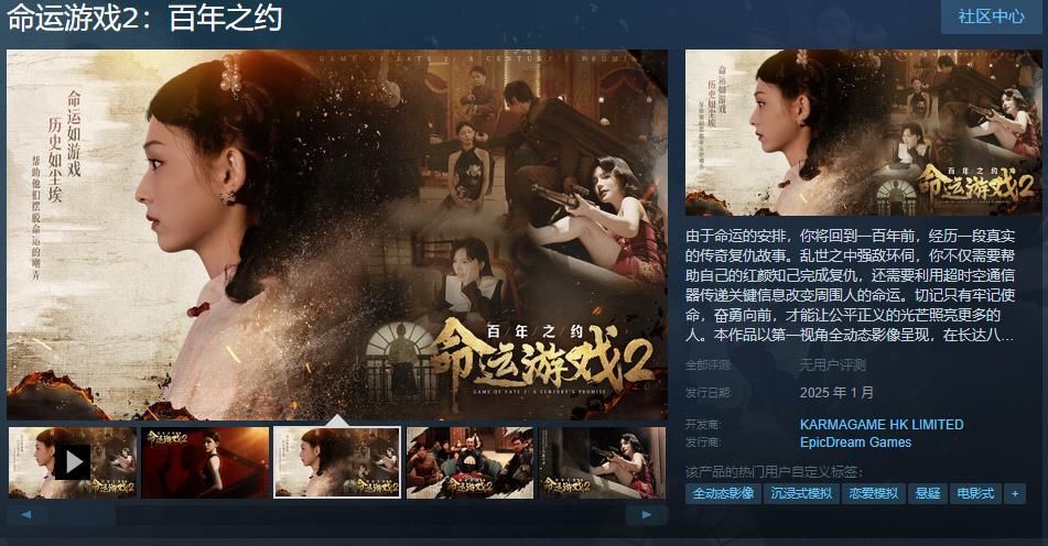 今日(10月31日),真人影游《命运游戏2:百年之约》Steam页面上线,游戏支持简繁体中文,预计于2025年1月发售,感兴趣的玩家可以点击此处进入商店页面。