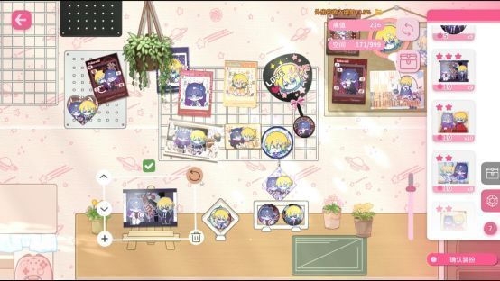 新增的手作台系统允许玩家自由设计全新的谷子。玩家可以随心选择角色的不同种类立绘,和各式各样的装饰部件及谷子底板进行搭配,充分开发巧思,创作独属于自己的魅力制品。