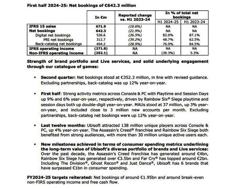育碧在过去一年中还吸引了1.38亿玩家,同比增长4%。而《刺客信条》系列和《彩虹六号:围攻》都有强大的受众群体,分别吸引了超3000万的活跃用户。