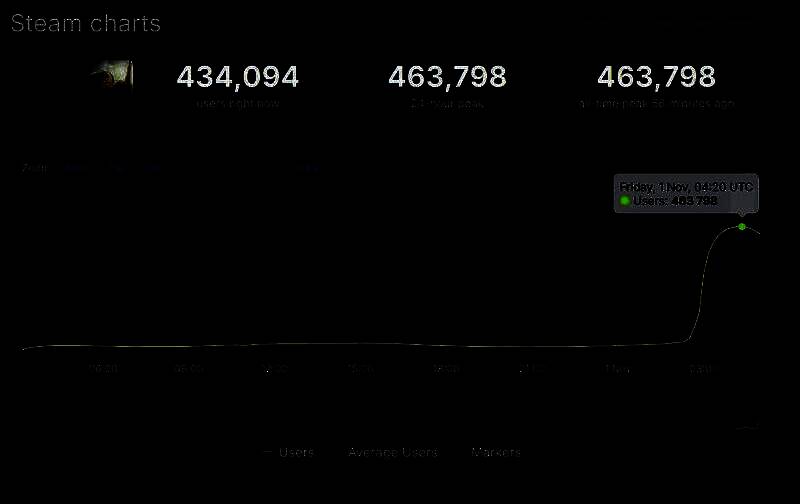 而随着测试的开放,《怪物猎人:荒野》的在线人数不断攀升,仅用了一个多小时的时间就来到了463798人的峰值(4:20 UTC为北京时间12:20)。