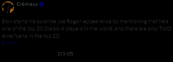 ·马斯克则低调的谈到了《暗黑4》玩的这么溜的原因,:“在《暗黑4》中能够集中精神,稳定心态。”