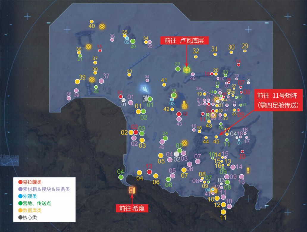 《剑星》中的大沙漠是游戏里非常重要的中期地图,在这个地图的可收集物品有很多,核心就是其中一种,首先是贝塔核心,射击岩山西北侧的标靶无人机放下绳子,然后从西侧的岩壁出发登上岩山,靠近调查南侧的遗体即可。