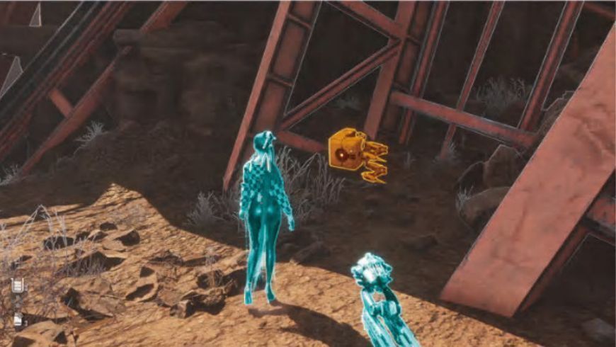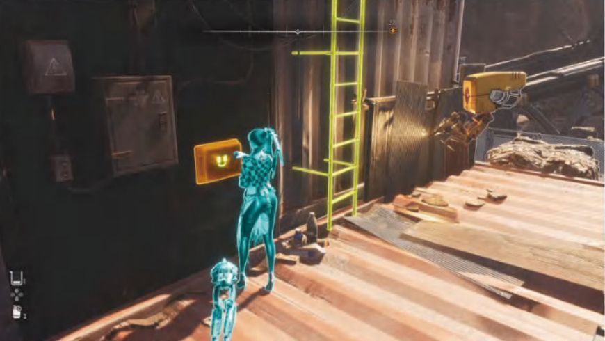 10~11、靠近调查集装箱内的遗体,获得[记忆棒303号市民的恳求]。遗体旁边有一道小门,穿过就可以看到藏在另一个集装箱内的宝藏机器人,打爆获得密码[废土,天线杆],对应箱子为废土东北侧的粉37号箱子。