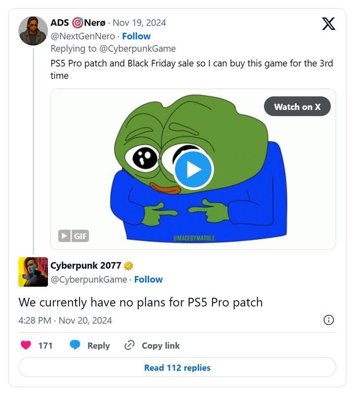 《赛博朋克2077》已经成为当前世代主机上最出色、视觉和技术上最令人印象深刻的游戏之一,但开发商CD Projekt RED并不打算为PS5 Pro增强这款游戏。在推特上回应相关问题时,该工作室写道:“我们目前没有计划推出PS5 Pro补丁。”