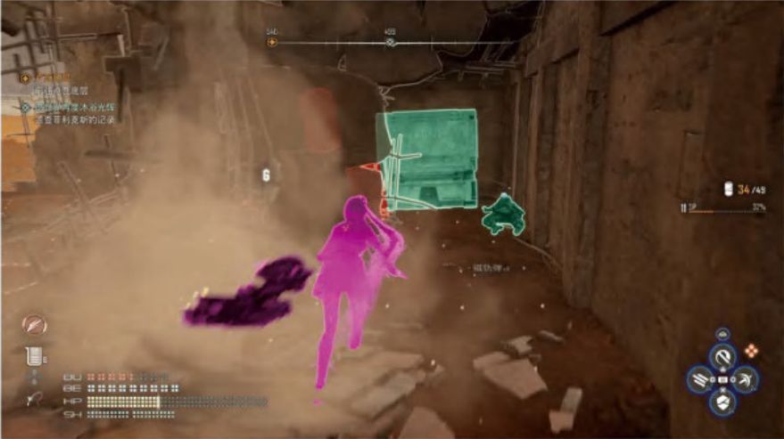 33、利用二连跳+空中冲刺跳上废墟二层,调查二层遗体获得[记忆棒390号拾荒者的记忆]。