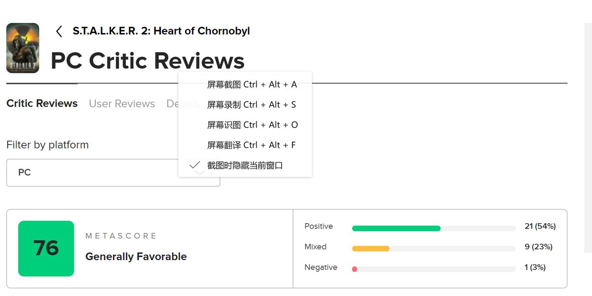 《潜行者2》即将于明日正式发售,目前有关的媒体的评分已经解禁,截止发稿时,M站PC版共有31家媒体评测,均分76。