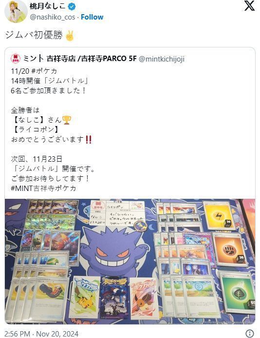 ·举办赛事的店铺也发布声明祝贺桃月梨子夺冠,粉丝惊叹没想到偶像桃月梨子也是《宝可梦卡牌》的忠实粉丝,而且明显还是位高手。