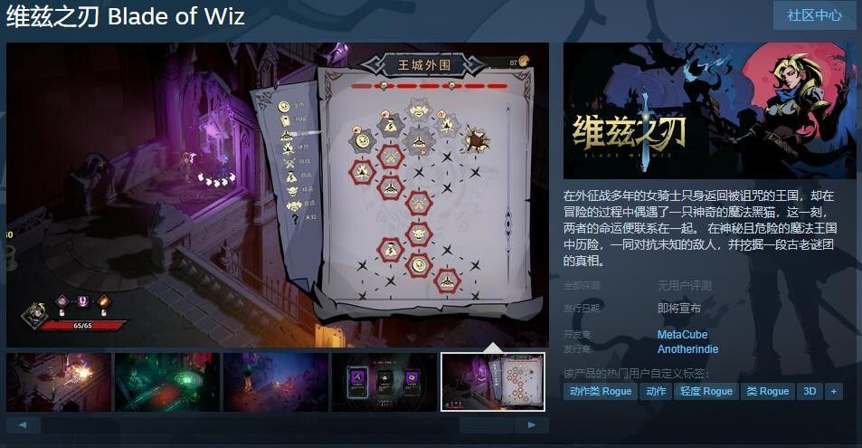 今日(11月20日),俯视角动作动作肉鸽游戏《维兹之刃BladeofWiz》Steam页面公布,发售日待定,支持简体中文,感兴趣的玩家可以点击此处进入商店页面。
